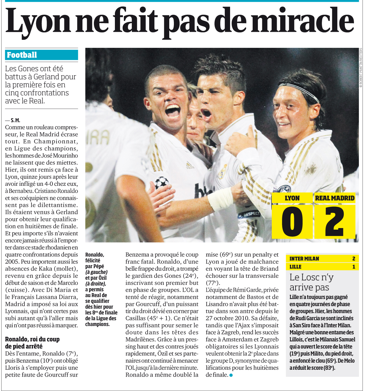 Après la fessée reçue à Santiago Bernabeu (4-0) lors de la précédente journée, les joueurs de l'OL ont envie de remettre les pendules à l'heure devant leur public de Gerland. Les deux victoires de suite contre l'AS Saint-Étienne ont permis aux Lyonnais de se refaire un moral d'acier avant ce match retour contre les Madrilènes. Avant la venue de l'Ajax Amsterdam, qui compte aussi 4 points, il est nécessaire de prendre au moins un point ce soir.