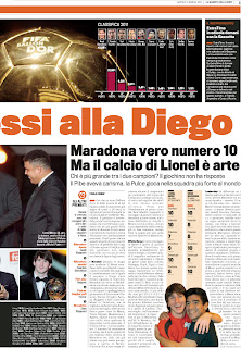 Le jury du Ballon d'Or a consacré Messi pour la troisième année consécutive face à la concurrence de son partenaire du Barça Xavi et du Portugais du Real Madrid Cristiano Ronaldo. «J'ai souvent entendu parler ces dernières années d'un nouveau Maradona mais lorsqu'on parle de Lionel Messi, le joueur est à la hauteur du battage médiatique. Il a un talent incroyable et un manière unique de dribbler à laquelle personne ne peut s'attendre», reconnaissait Diego Maradona juste après la coupe du monde 2010 lorsqu'il avait eu le petit génie argentin sous ses ordres de sélectionneur. Adoubé par son idôle d'enfance, Lionel Messi marche - voire sprinte - dans les pas d'El Pibe de Oro et a déjà écrit - à seulement 24 ans - certaines des plus belles pages de l'histoire du football mondial. Si seul un titre de champion du monde manque à son palmarès, l'attaquant du FC Barcelone a tout gagné avec son club formateur : trois Ligue des champions, deux coupes du monde des clubs, cinq championnats d'Espagne...